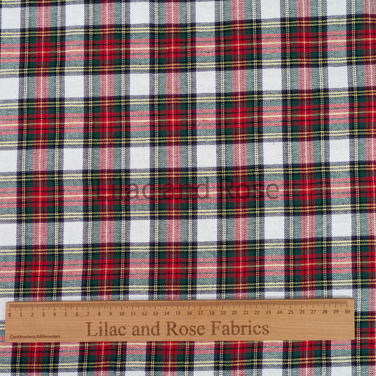 100% Brushed Cotton - Red and White Tartan