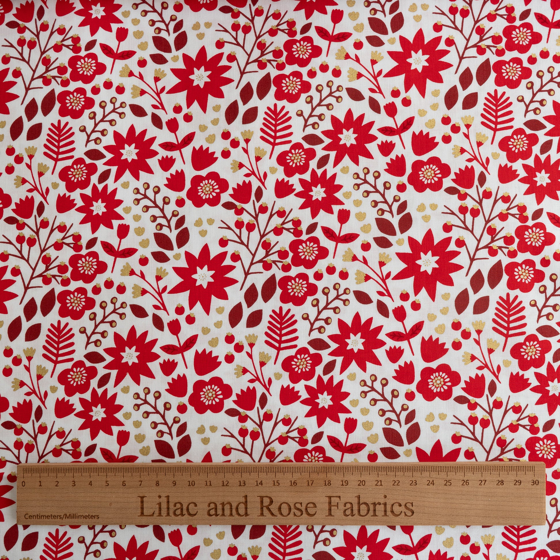 100% Cotton - Red Winter Floral by Dashwood Studios