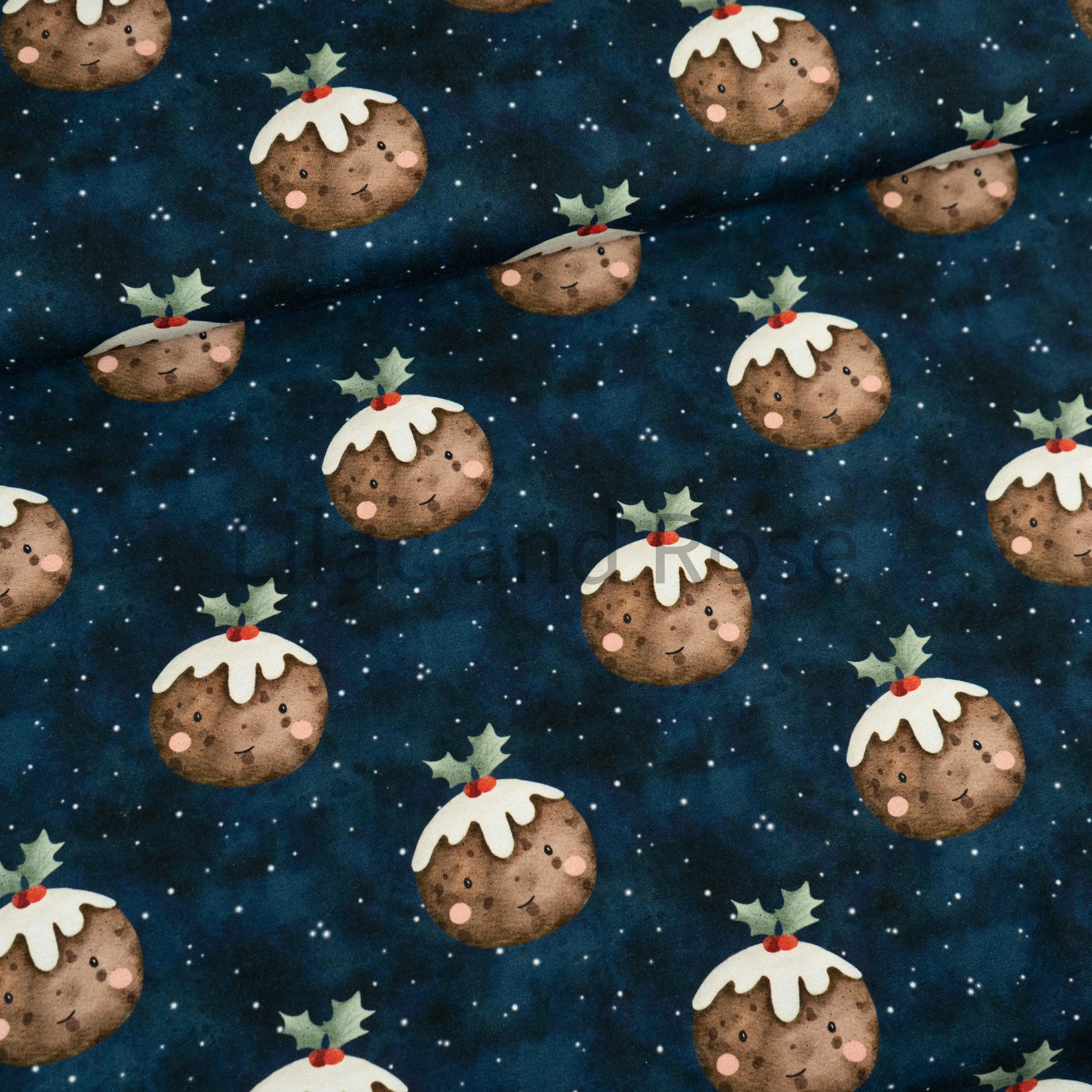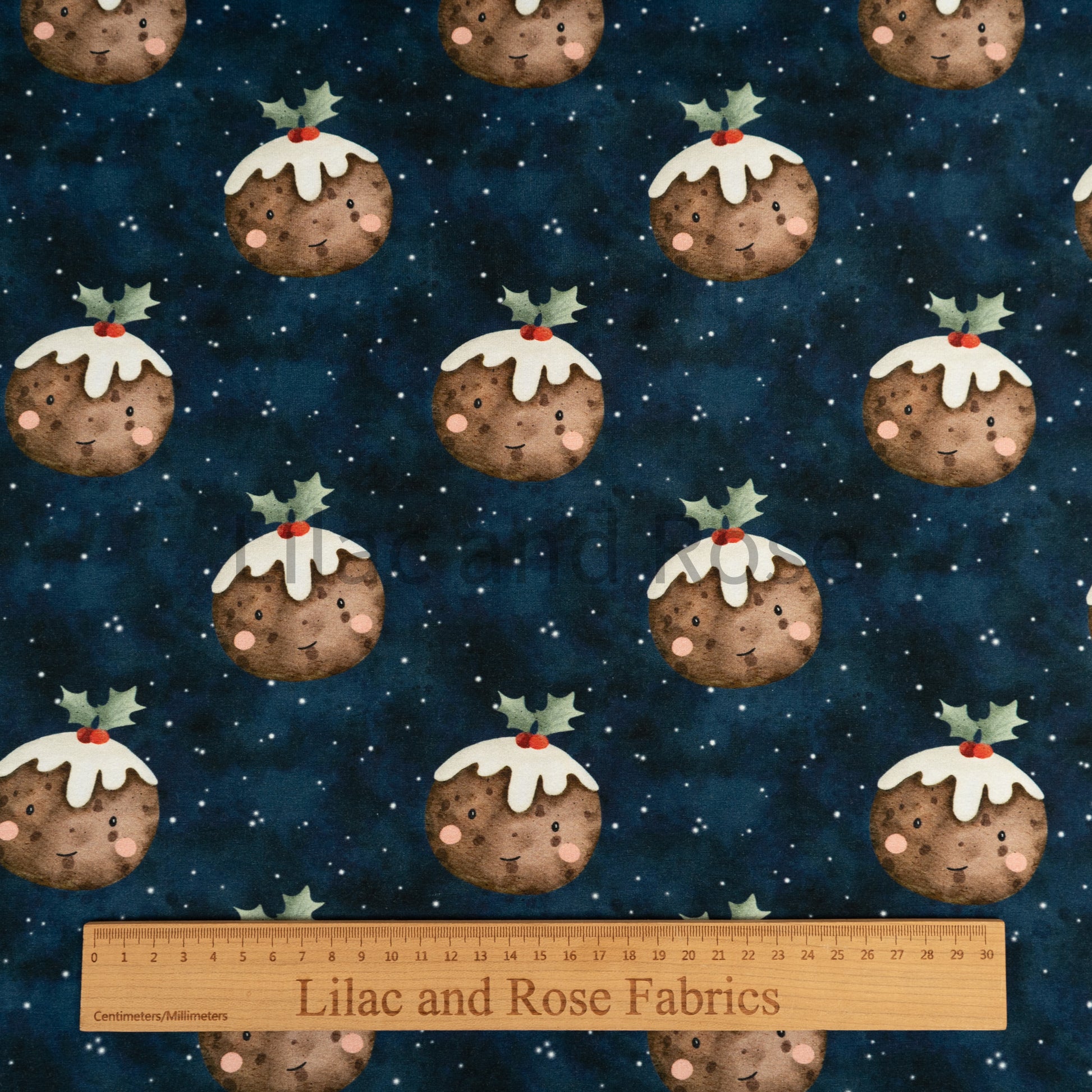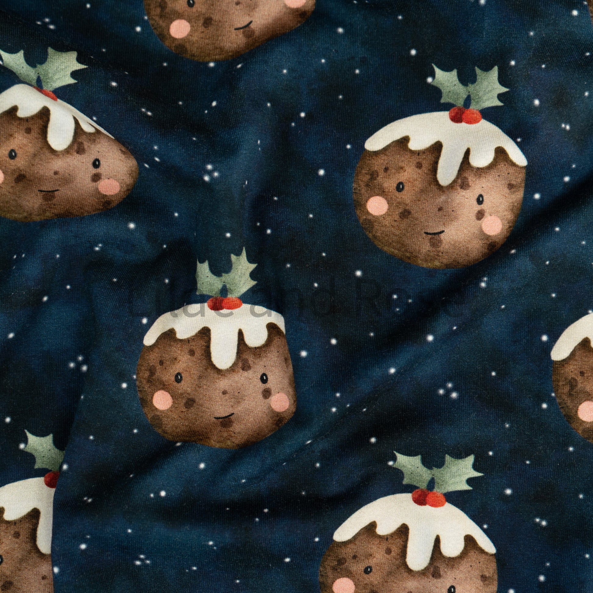 Cotton Jersey - Christmas Puddings in Navy