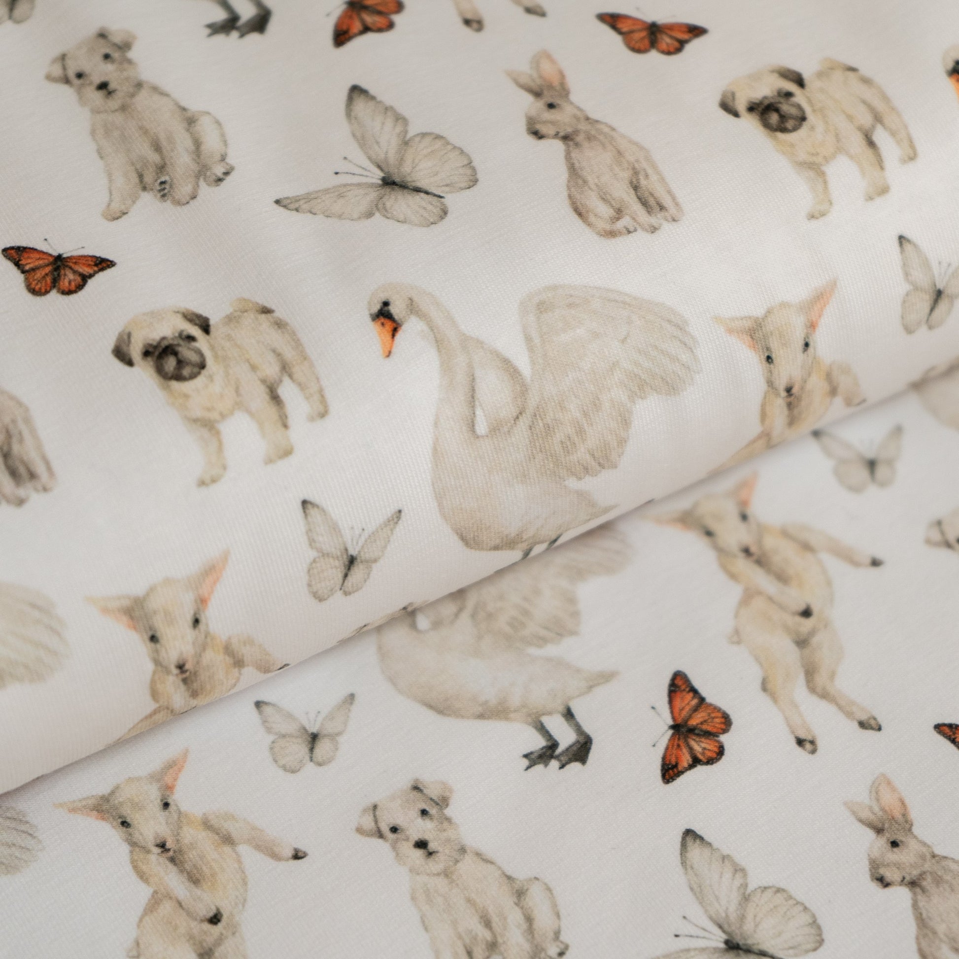 Cotton Jersey - White Animals