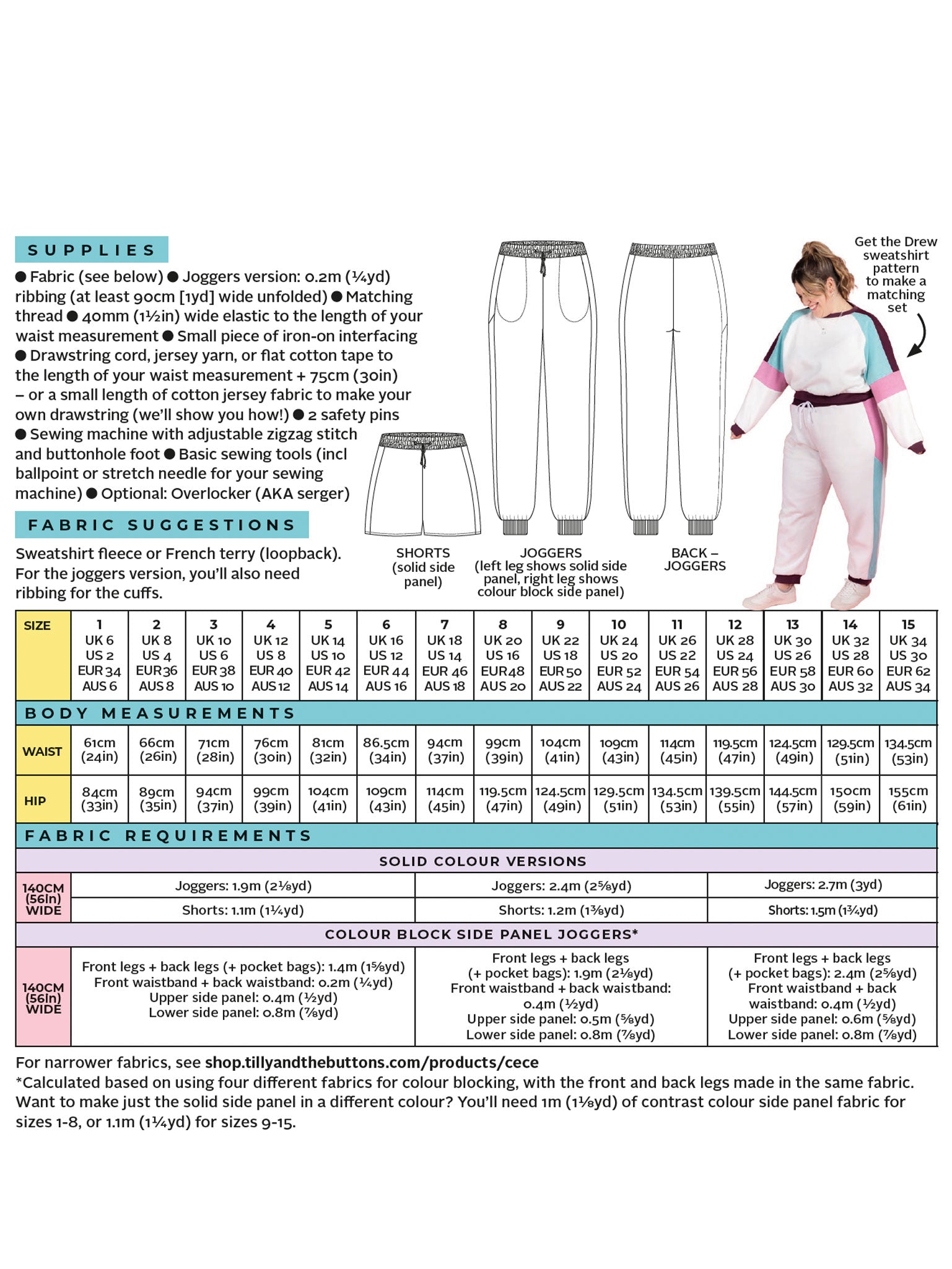 FABRIC SUGGESTIONS - Sweatshirt fleece or French terry (loopback). For the joggers version, you’ll also need ribbing for the cuffs.